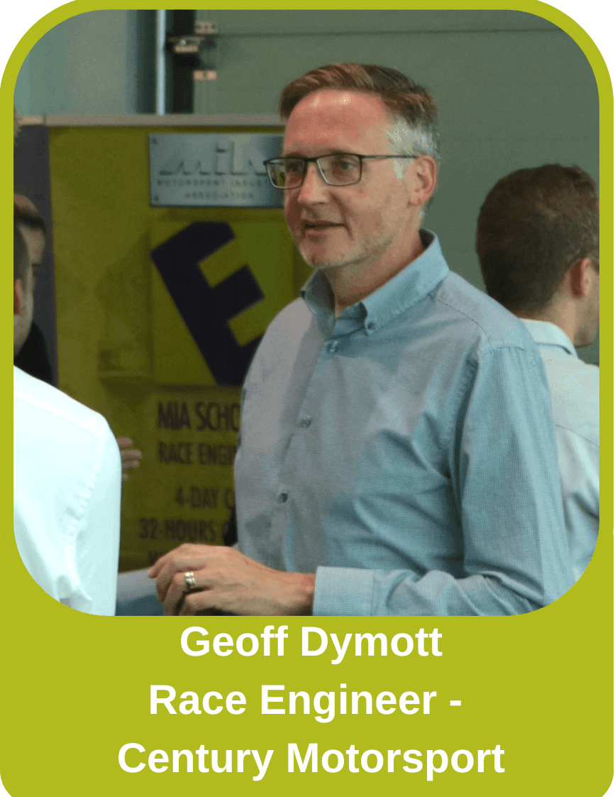 Geoff has worked for Williams Racing for over 20 years in a variety of roles including Vehicle Dynamics, Race / Test Data Engineer and Senior Performance Engineer. Starting his own consultancy in 2019, Geoff has also been a Race Engineer in British F4, Porsche Carrera Cup GB for Richardson Racing and more recently Century Motorsport in British GT.